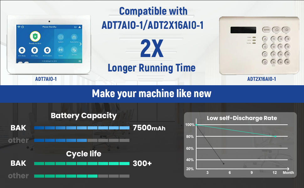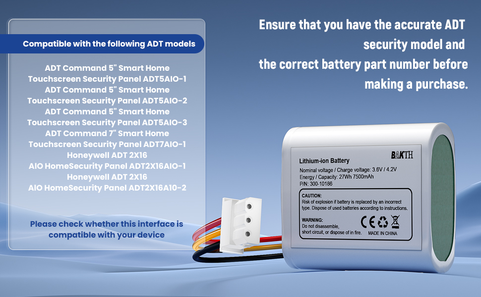 BAKTH-REPLACE ADT BATTERY PACK, 3.TV, 7500mAh, 27Wh